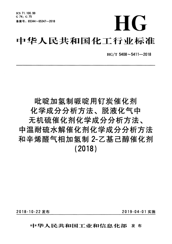 HG/T 5409-2018 脱液化气中无机硫催化剂化学成分分析方法