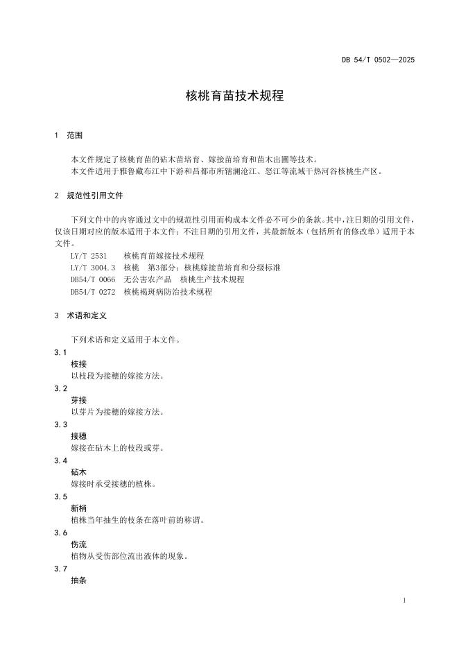 DB54/T 0502-2025 核桃育苗技术规程