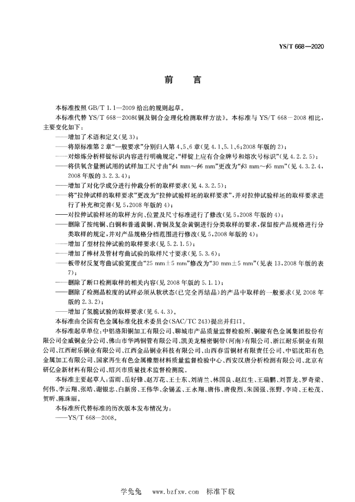 YS/T 668-2020 铜及铜合金理化检测取样方法