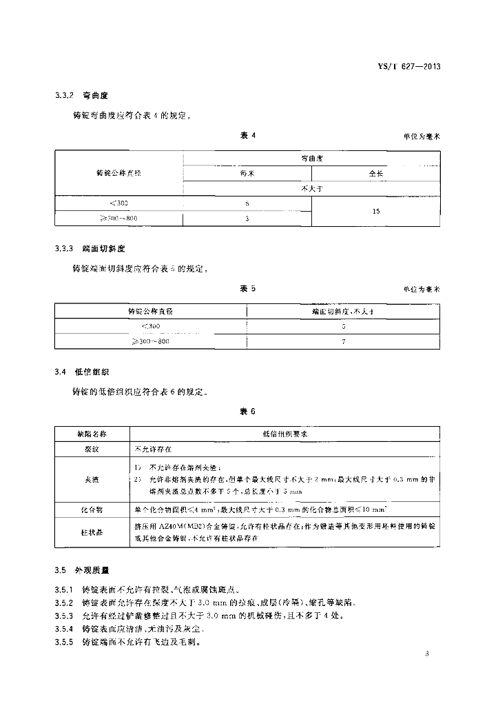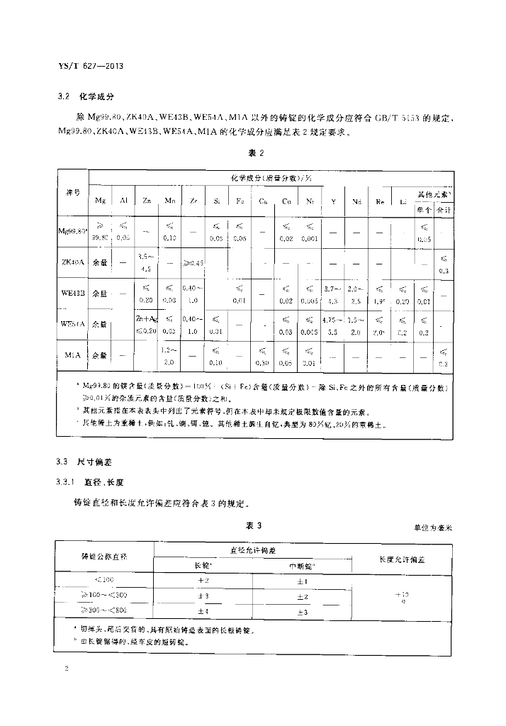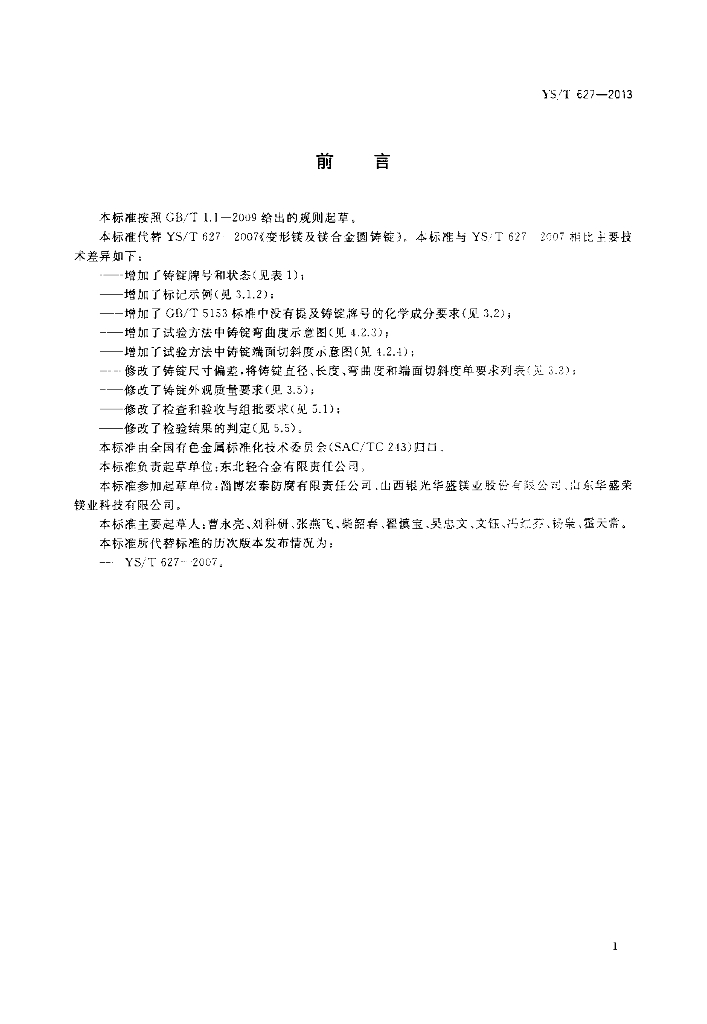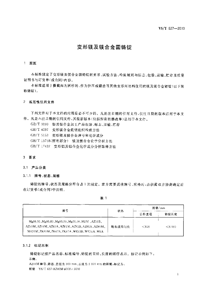 YS/T 627-2013 变形镁及镁合金圆铸锭