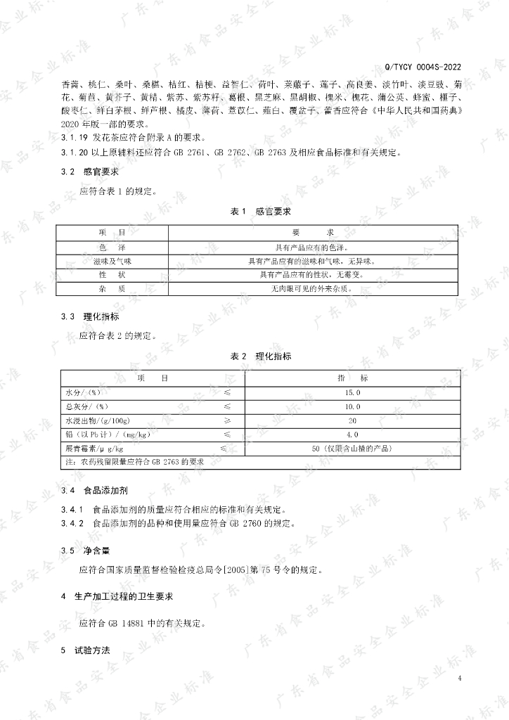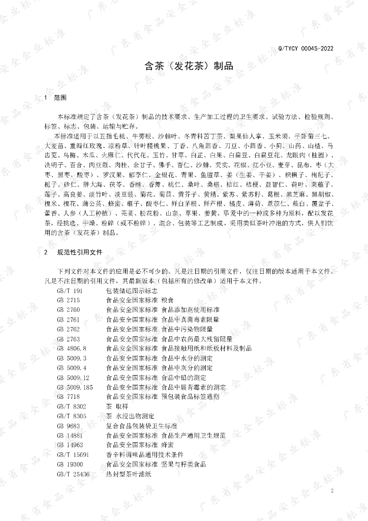 Q/TYCY 0004S-2022 含茶(发花茶)制品