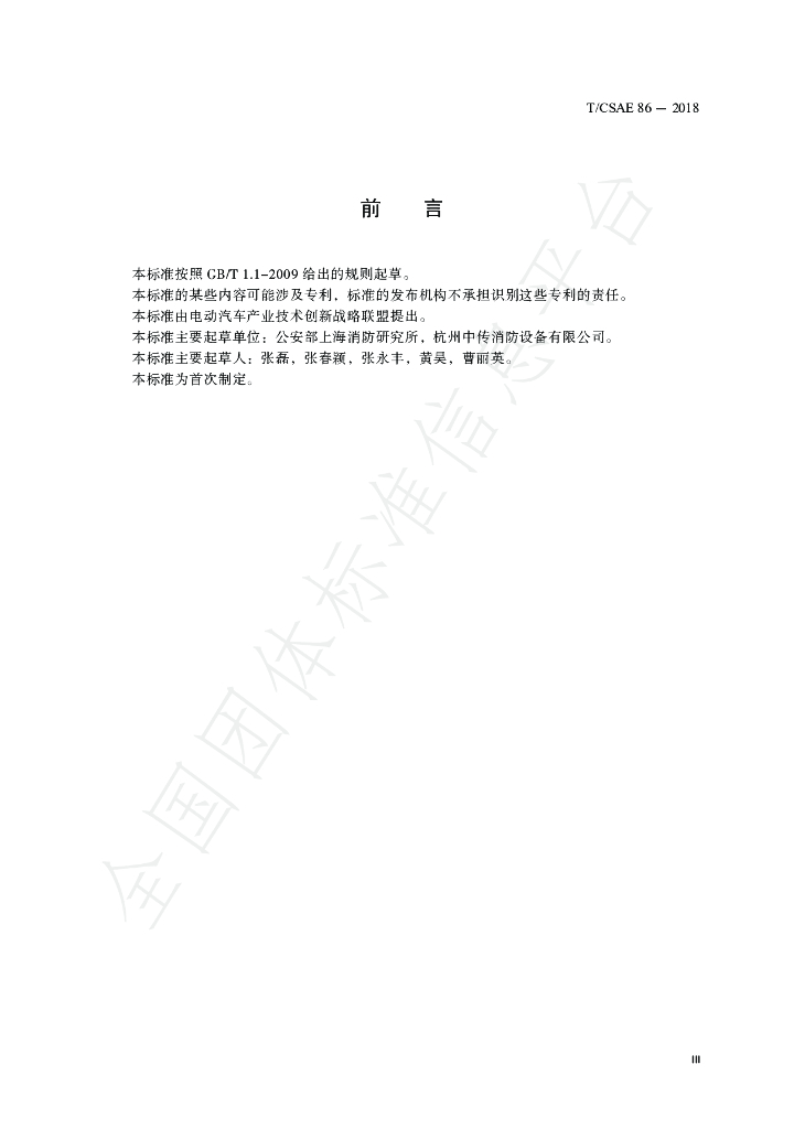 T/CSAE 86-2018 电动汽车锂离子电池箱火灾防控装置性能要求和试验方法