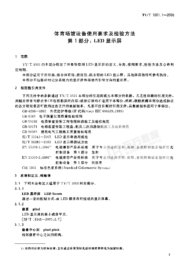 TY/T 1001.1-2005 体育场馆设备使用要求及检验方法 第1部分:LED显示屏