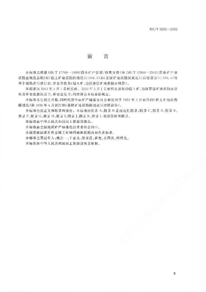 DZ/T 0202-2002 铝土矿、冶金菱镁矿地质勘查规范
