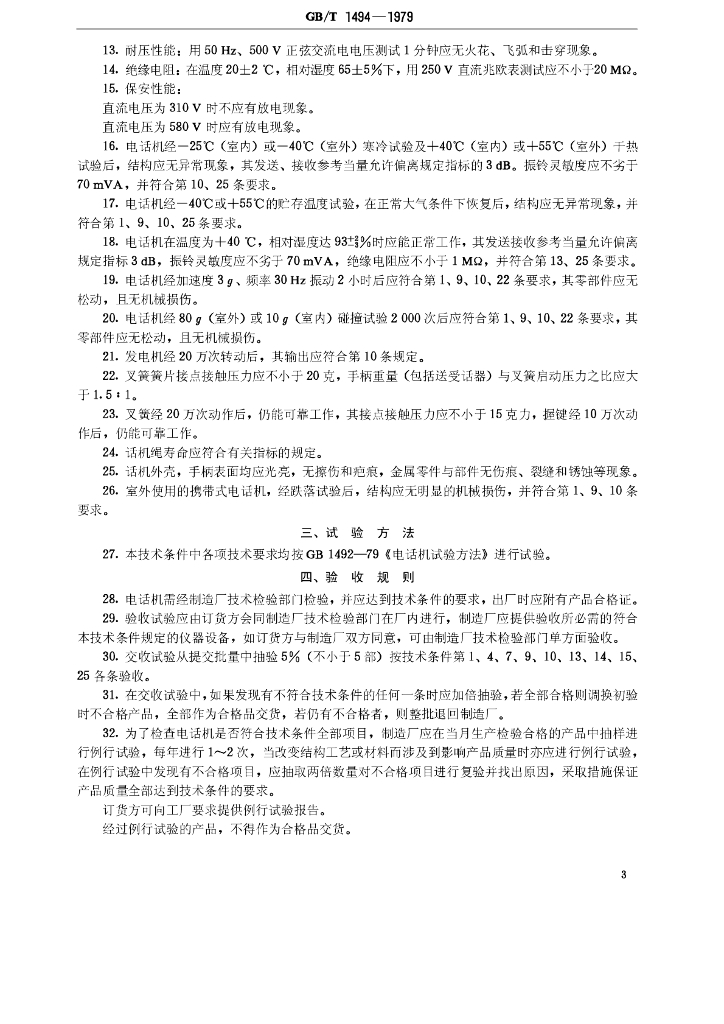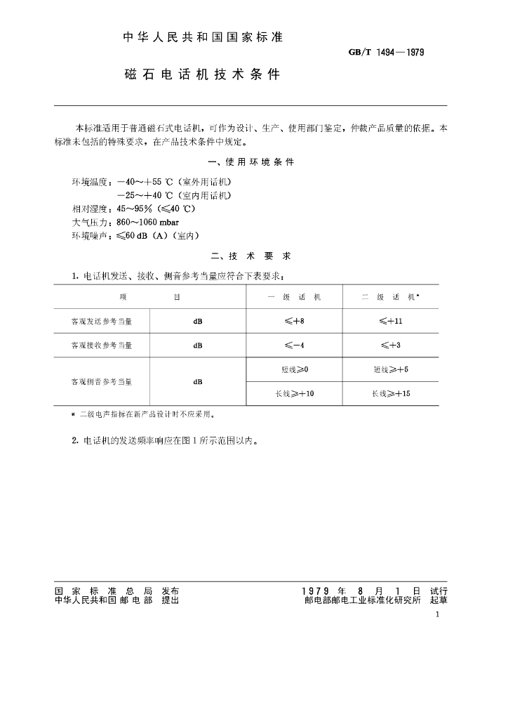 GB/T 1494-1979 磁石电话机技术条件