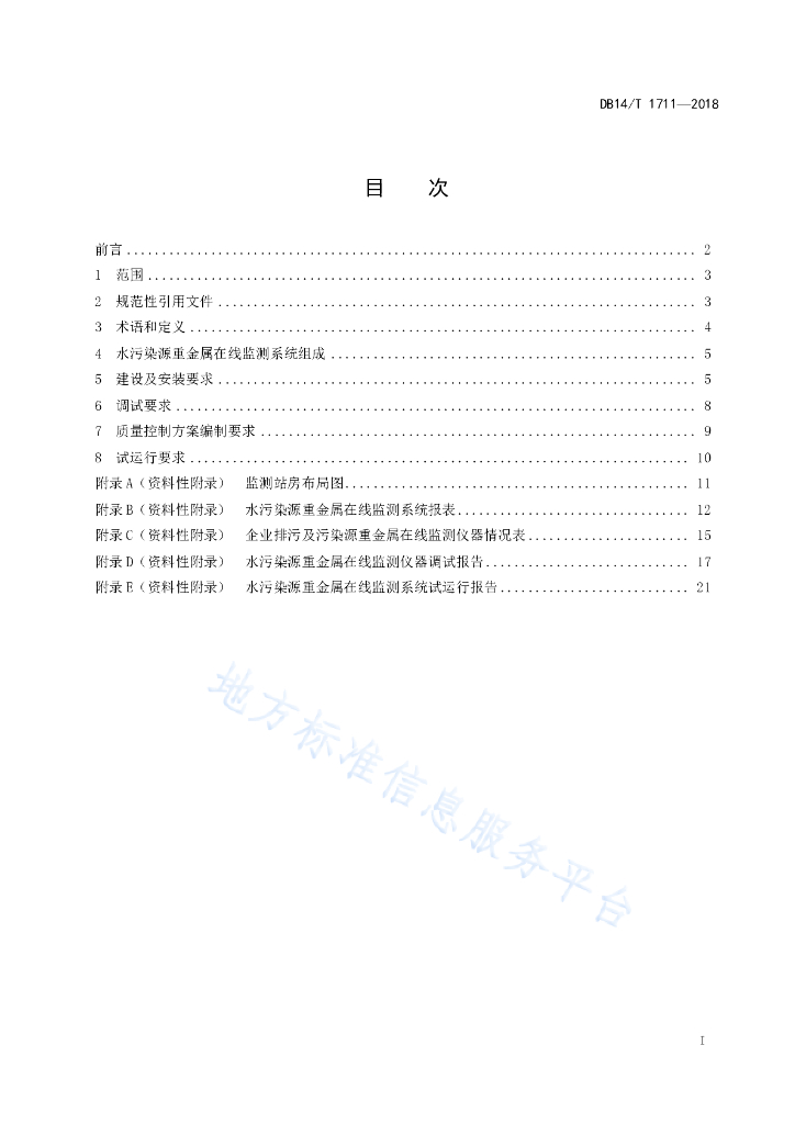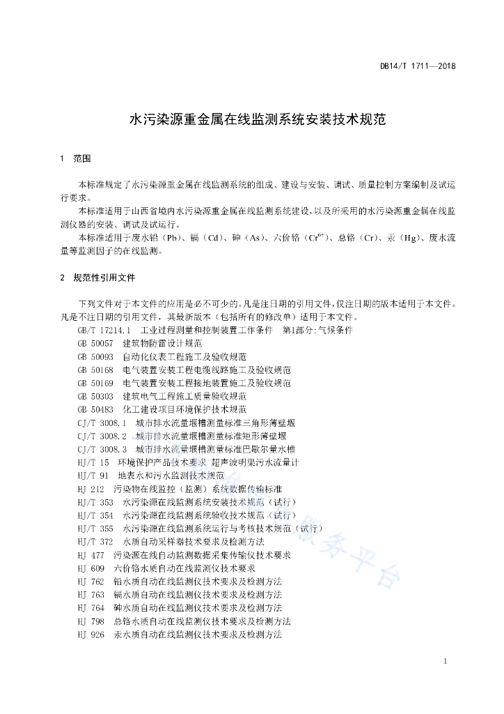 DB14/T 1711-2018 水污染源重金属在线监测系统 安装技术规范
