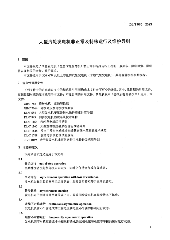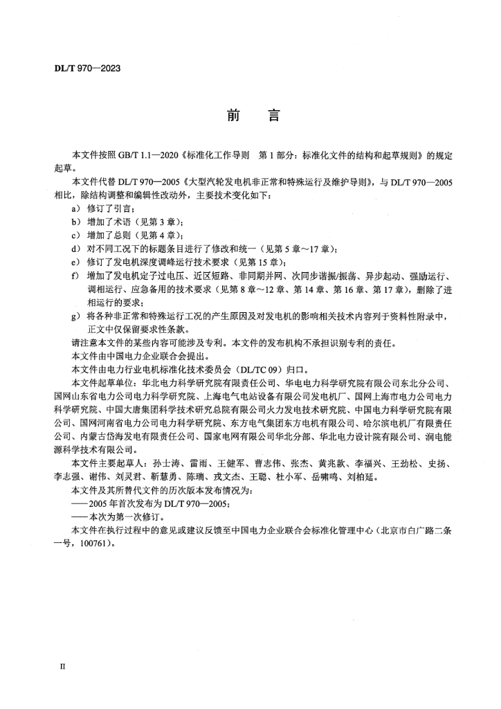 DL/T 970-2023 大型汽轮发电机非正常及特殊运行及维护导则