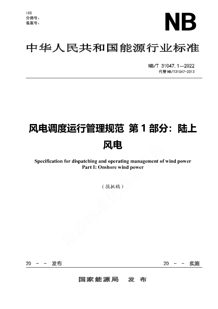 - 代替标准:NB/T 31047-2013