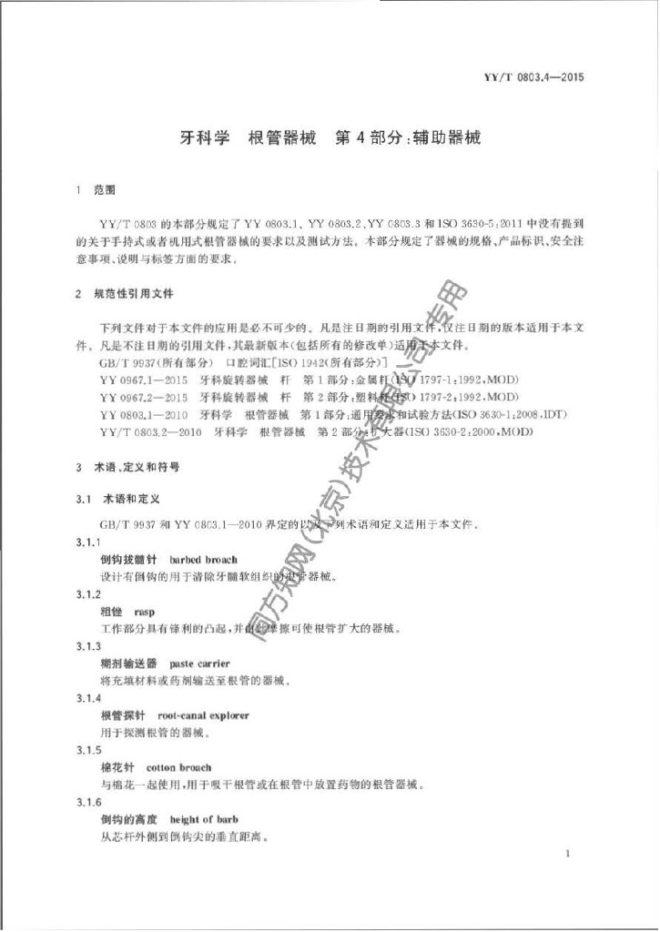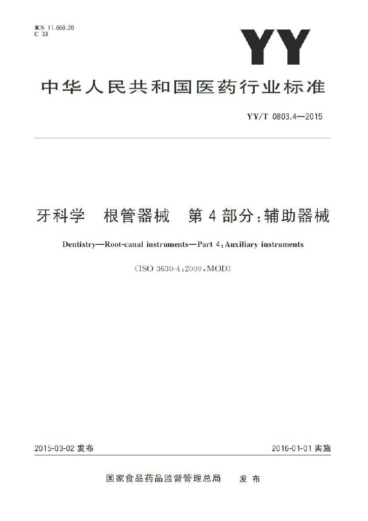 YY/T 0803.4-20 15 牙科学根管器械 第4部分:辅助器械