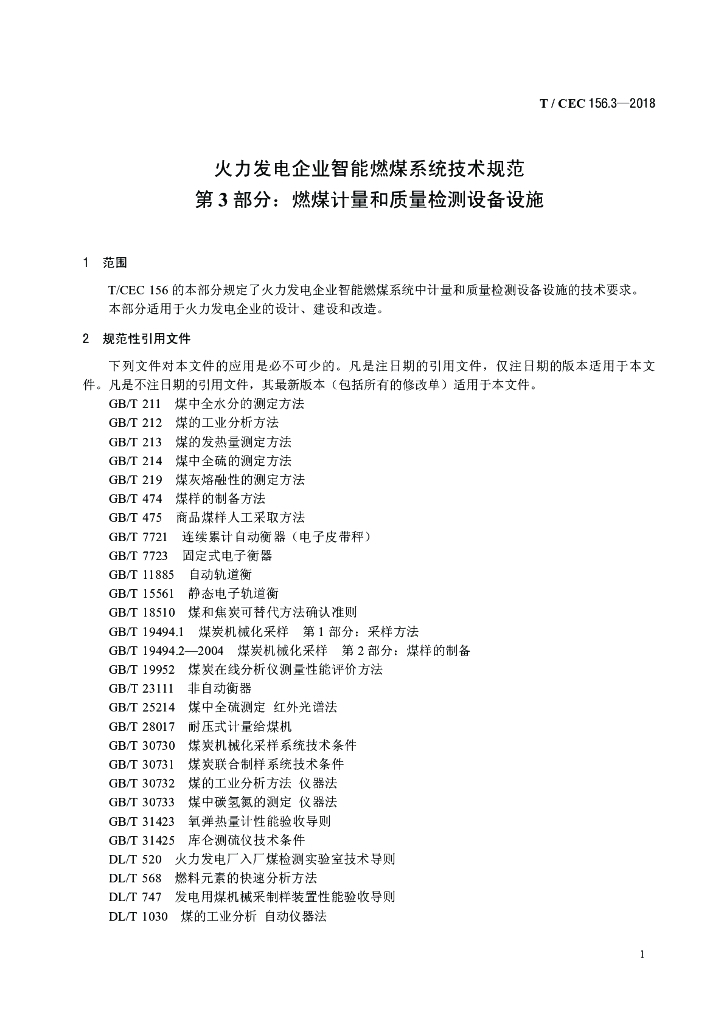 T/CEC 156.3-2018 火力发电企业智能燃煤系统技术规范 第3部分:燃煤计量和质量检测设备设施