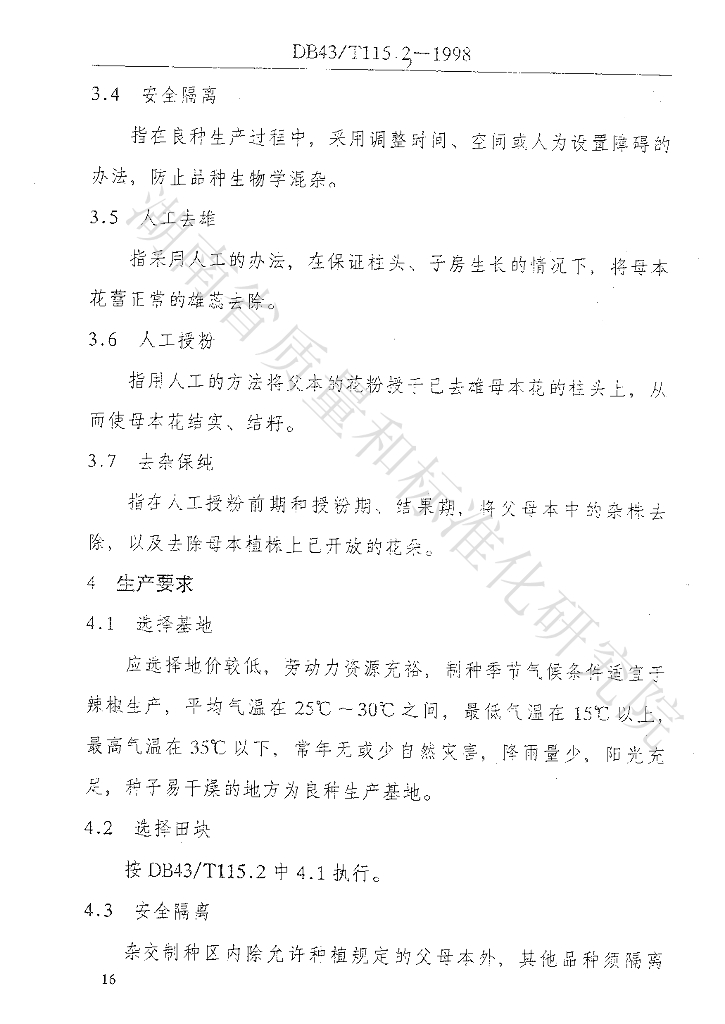 DB43/T 115.3-1998 杂交辣椒良种生产技术规程