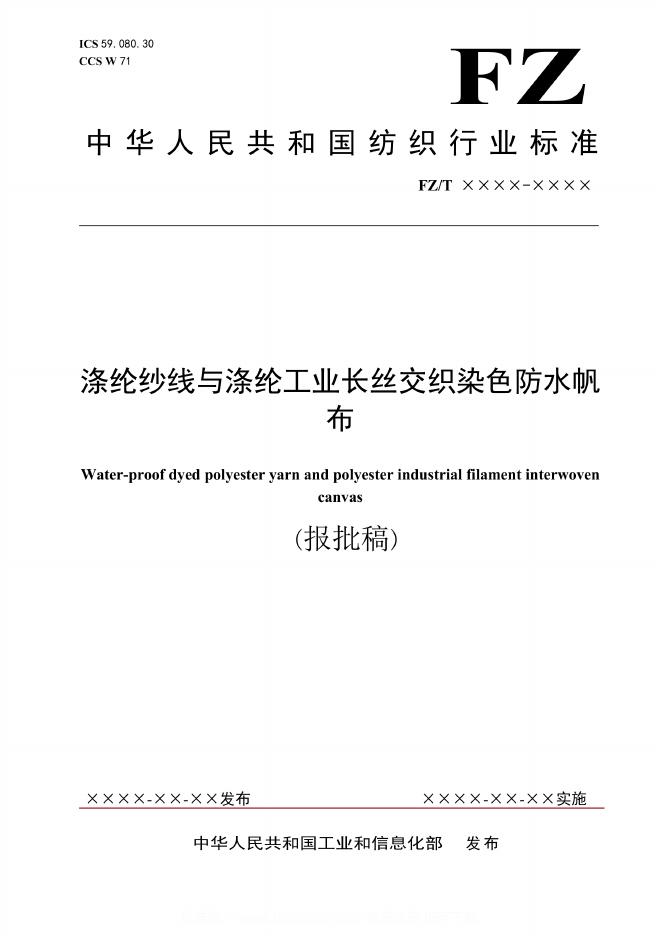 FZ/T 14056-2023 涤纶纱线与涤纶工业长丝交织染色防水帆布