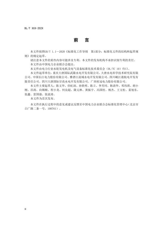 本文件起草单位:重庆大唐国际武隆水电开发有限公司、大唐水电科学技术研究院有限公司、中国长江电力股份有限公司、雅砻江流域水电开发有限公司、四川岷江港航电开发有限责任公司、四川大唐国际甘孜水电开发有限公司、广西桂冠电力股份有限公司。