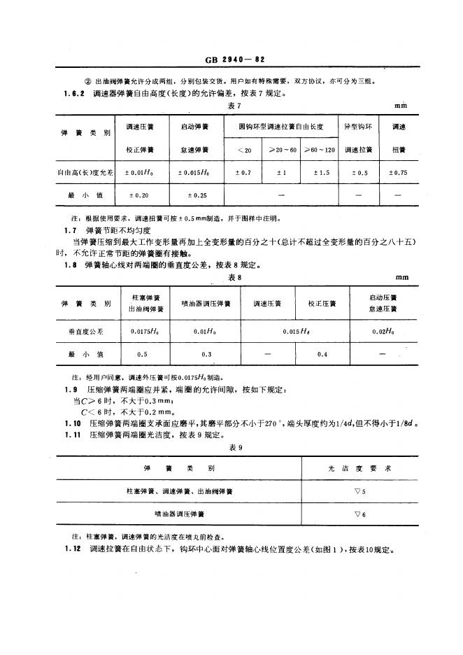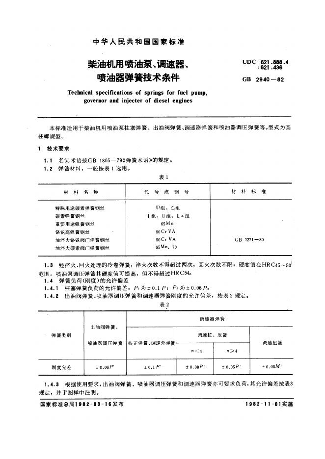 GB/T 2940-1982 柴油机用喷油泵、调速器、喷油器弹簧技术条件