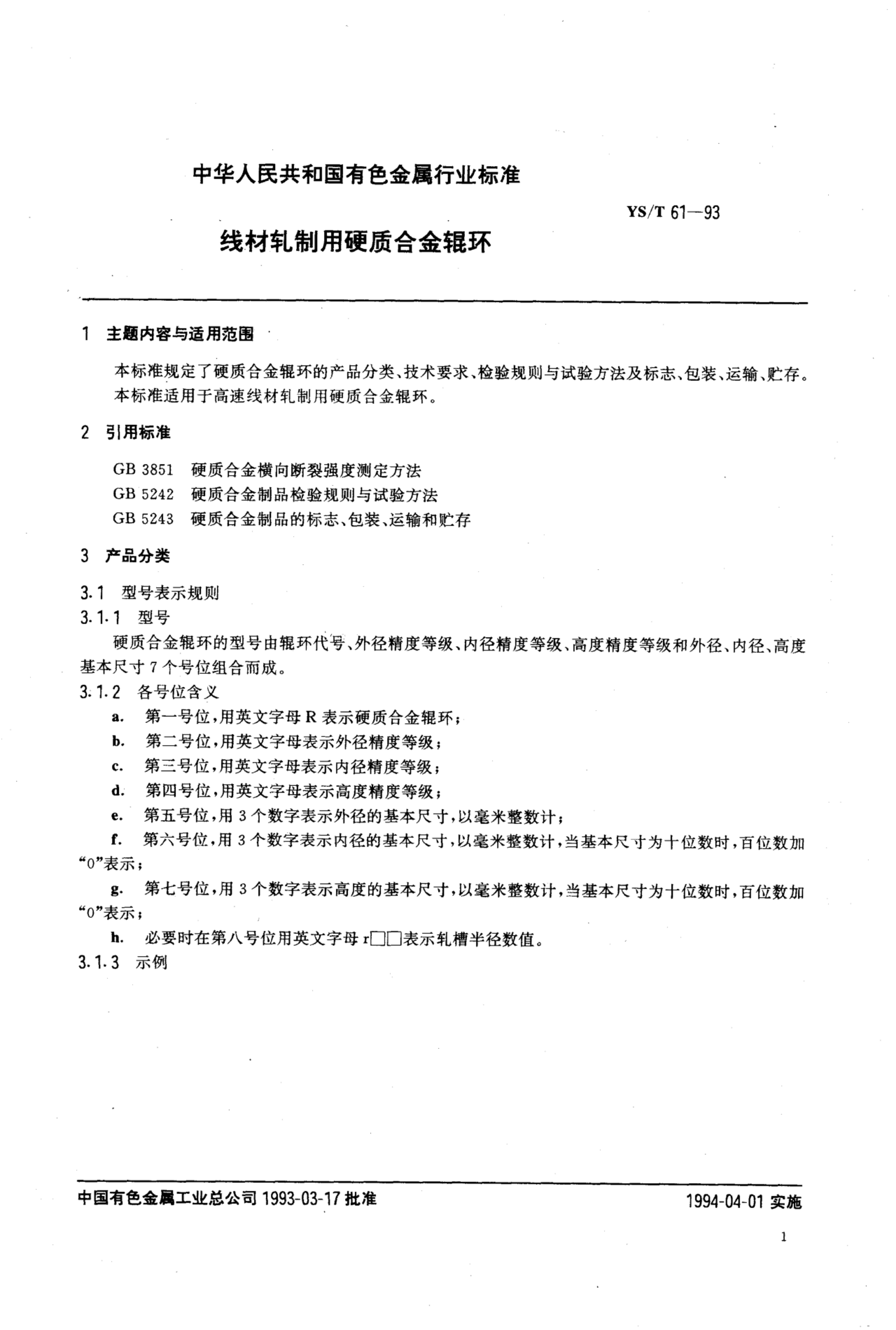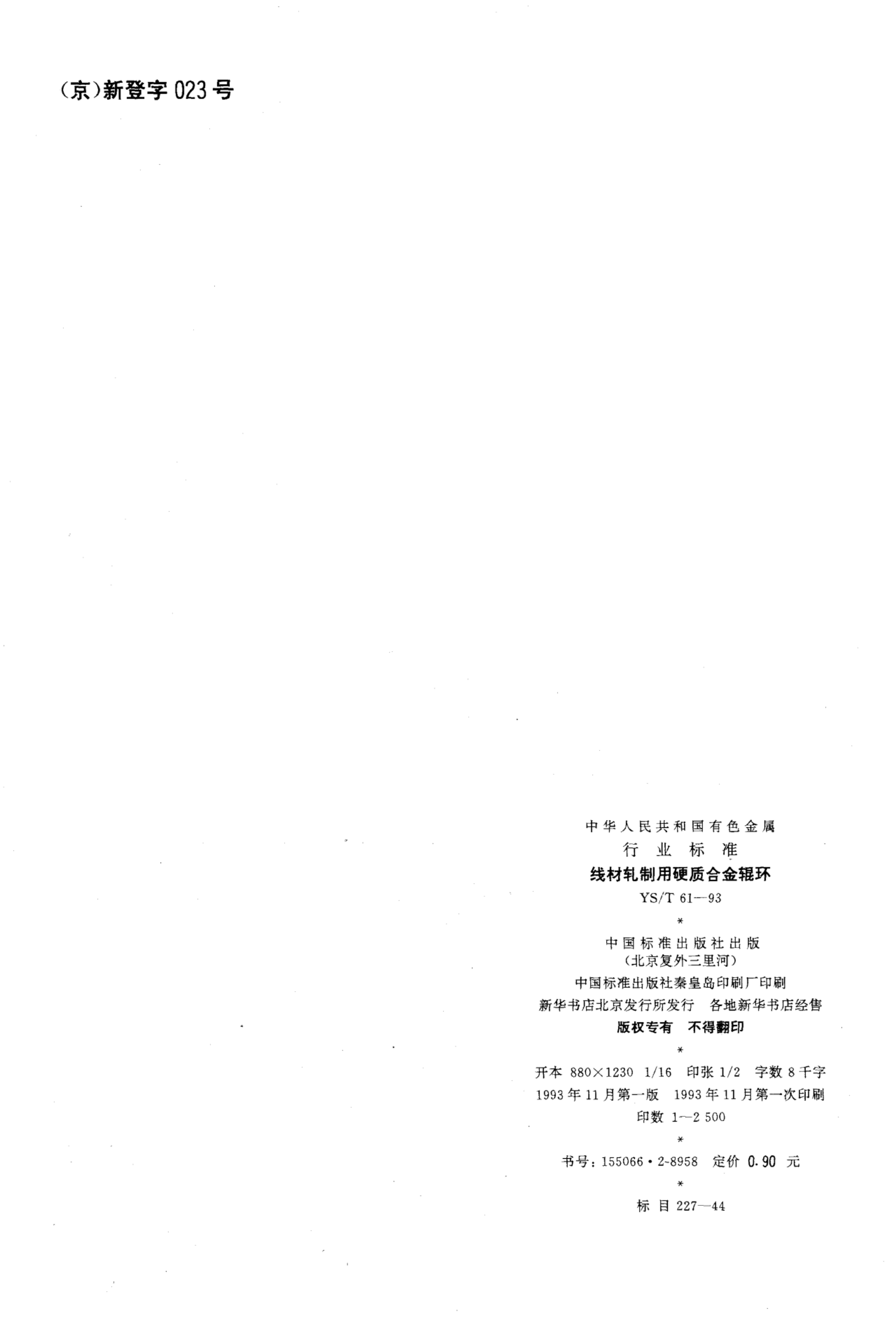 YS/T 61-1993 线材轧制用硬质合金辊环