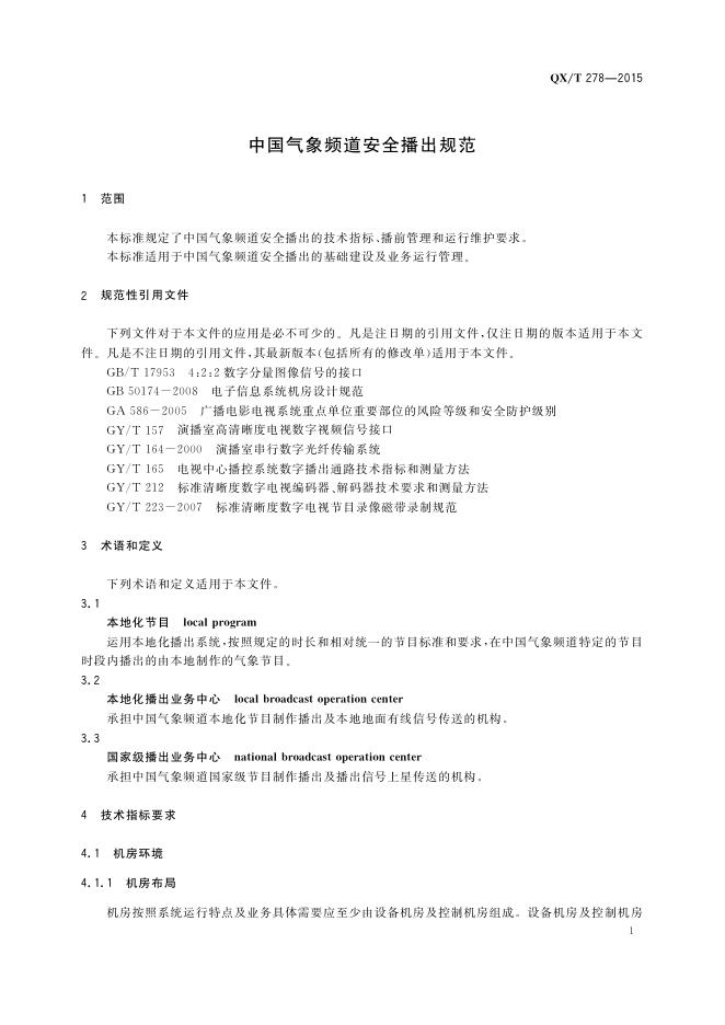 QX/T 278-2015 中国气象频道安全播出规范