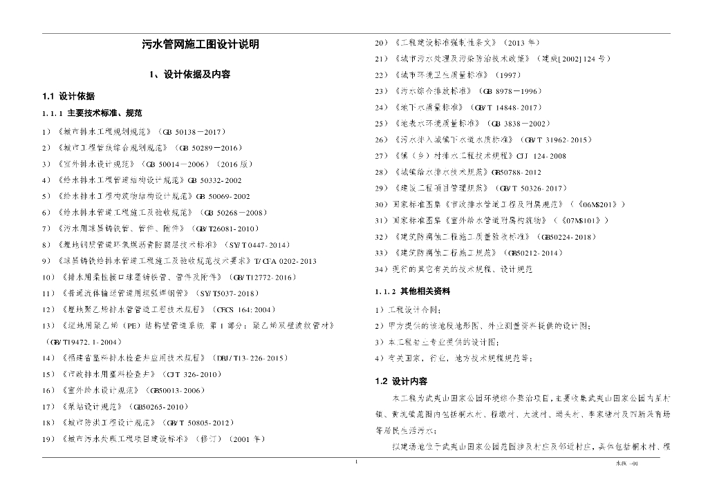 武夷山国家公园环境综合整治项目——配套管网施工图设计图纸