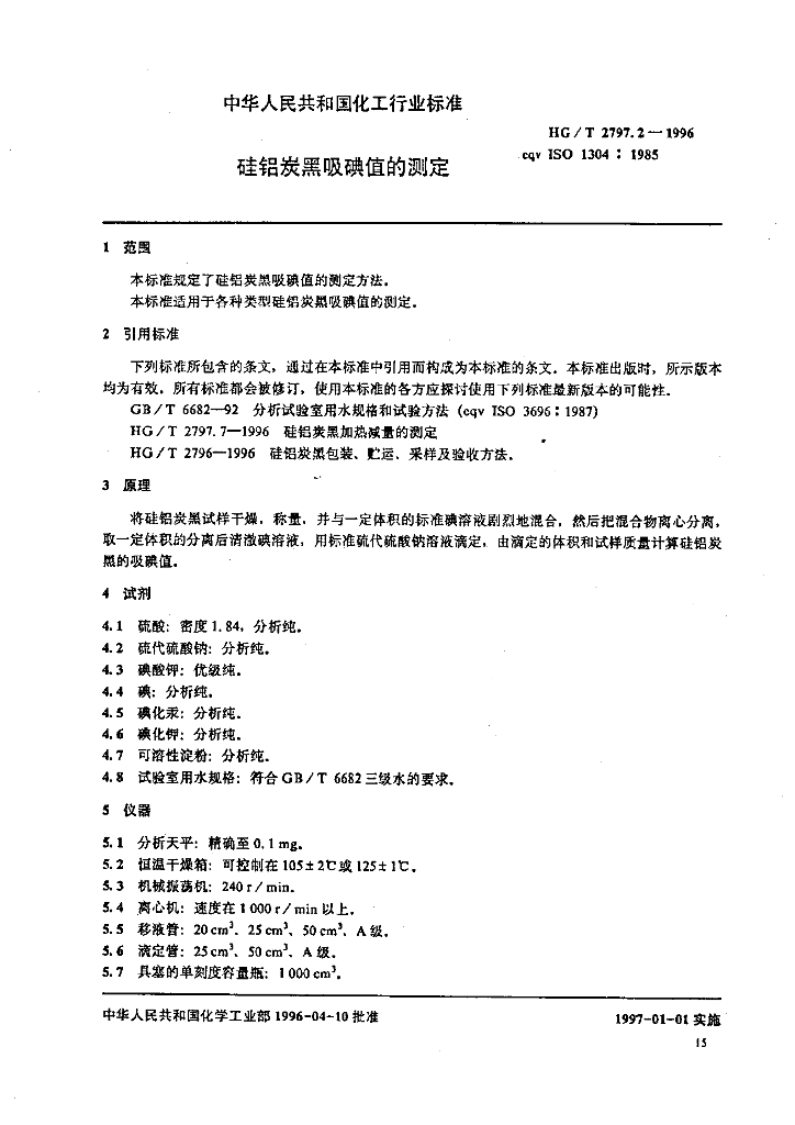 HG/T 2797.2-1996 硅铝炭黑吸碘值的测定