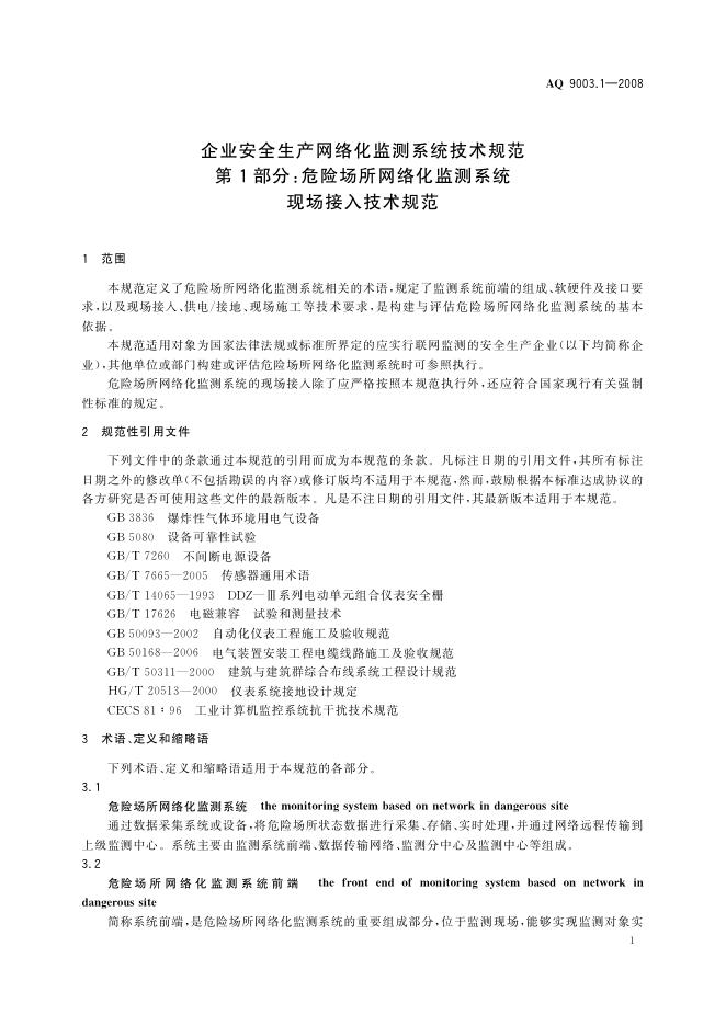 AQ 9003-2008 企业安全生产网络化监测系统技术规范