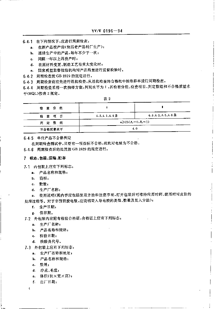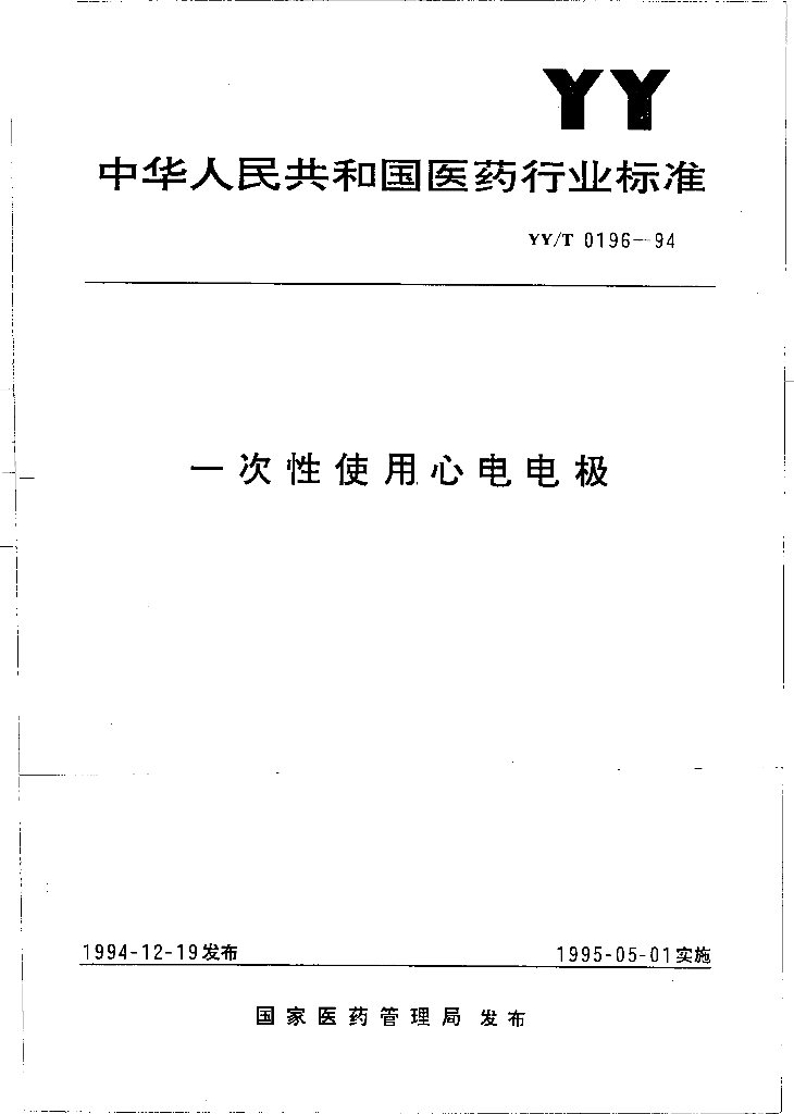 YY/T 0196-1994 一次性使用心电电极