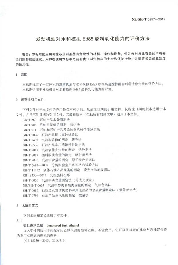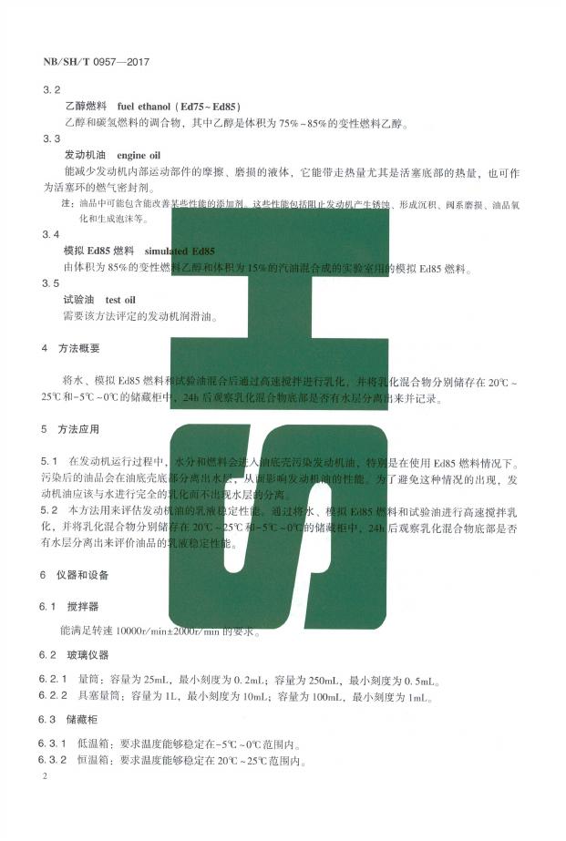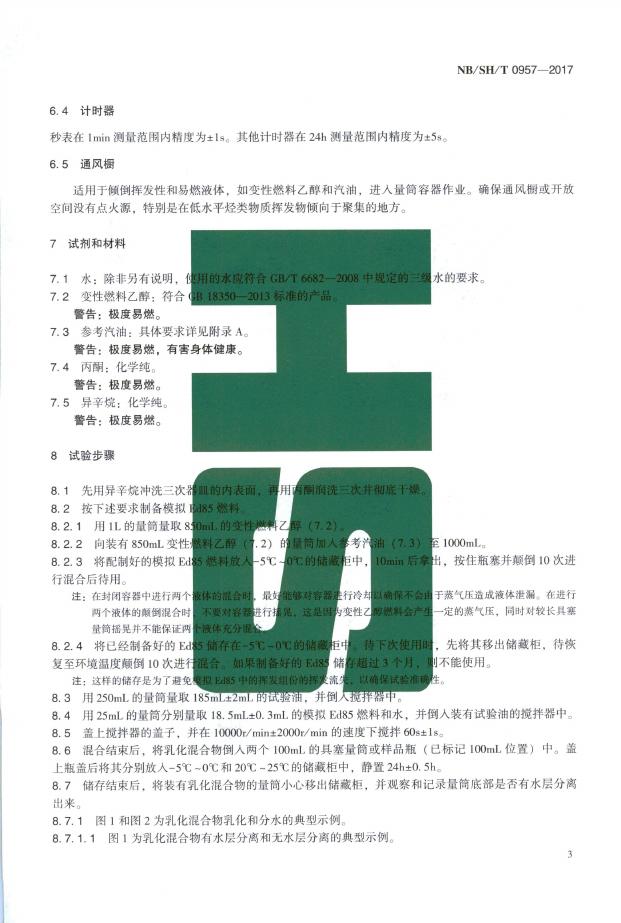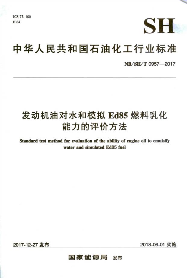 SH/T 0957-2017 发动机油对水和模拟Ed85燃料乳化能力的评价方法