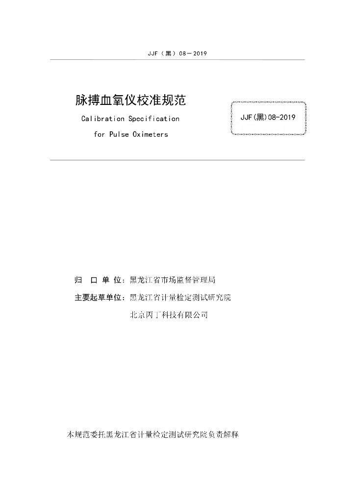 JJF(黑)08-2019 脉搏血氧仪校准规范