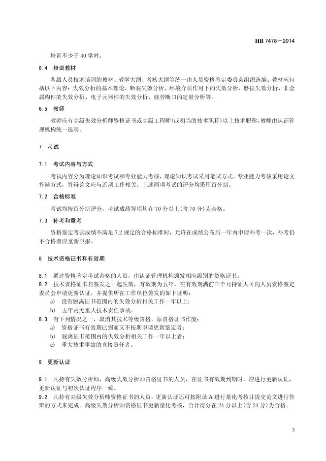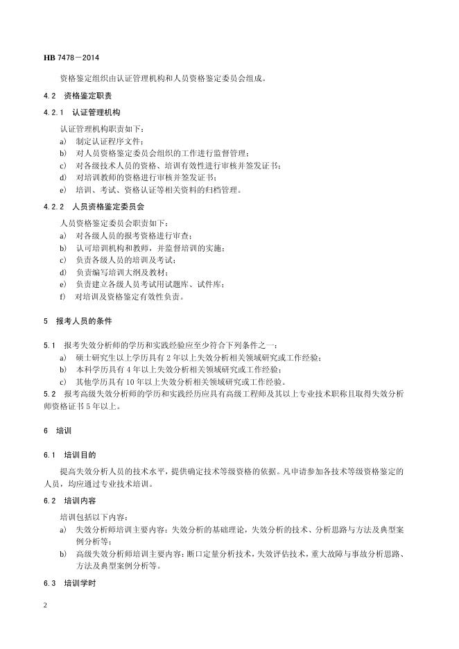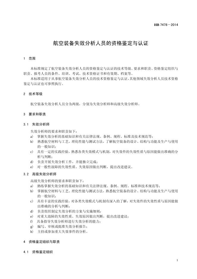 HB 7478-2014(2017) 航空装备失效分析人员的资格鉴定与认证