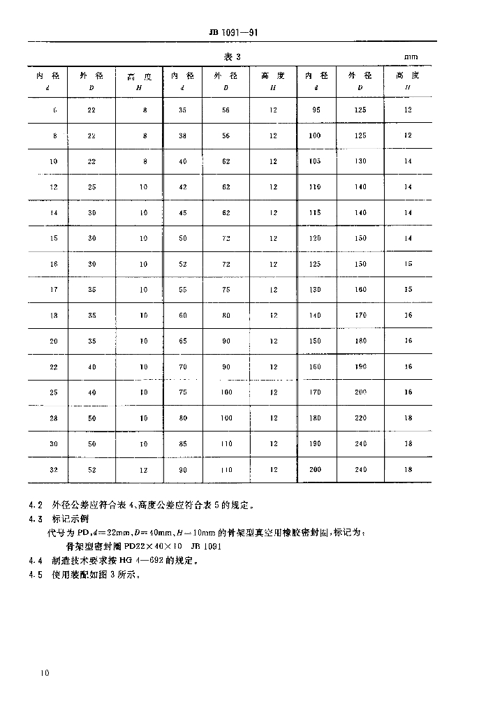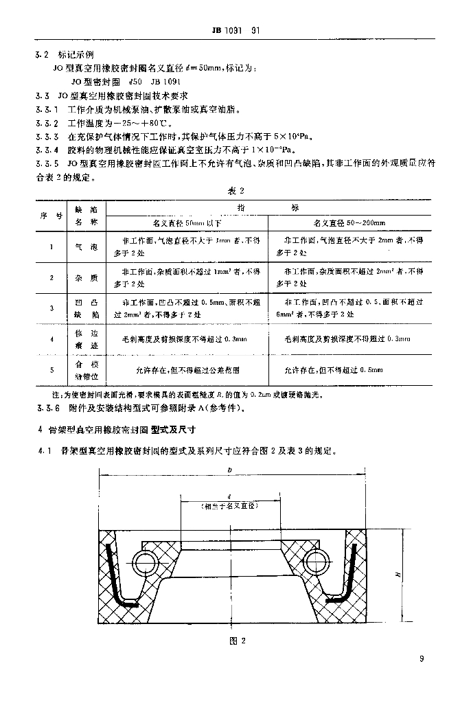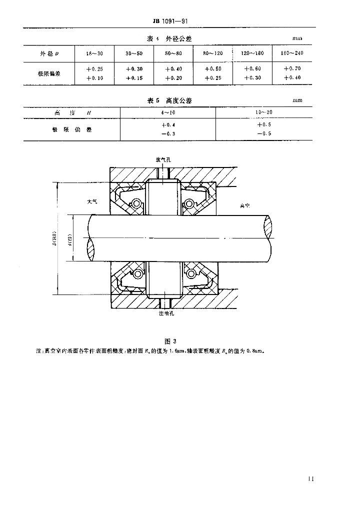 JB/T 1091-1991 JO型和骨架型真空用橡胶密封圈