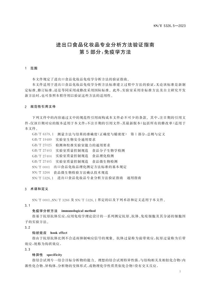 SN/T 5326.5-2023 进出口食品化妆品专业分析方法验证指南 第5部分:免疫学方法