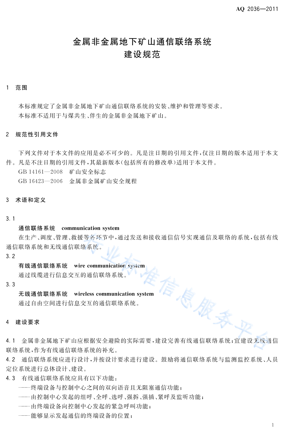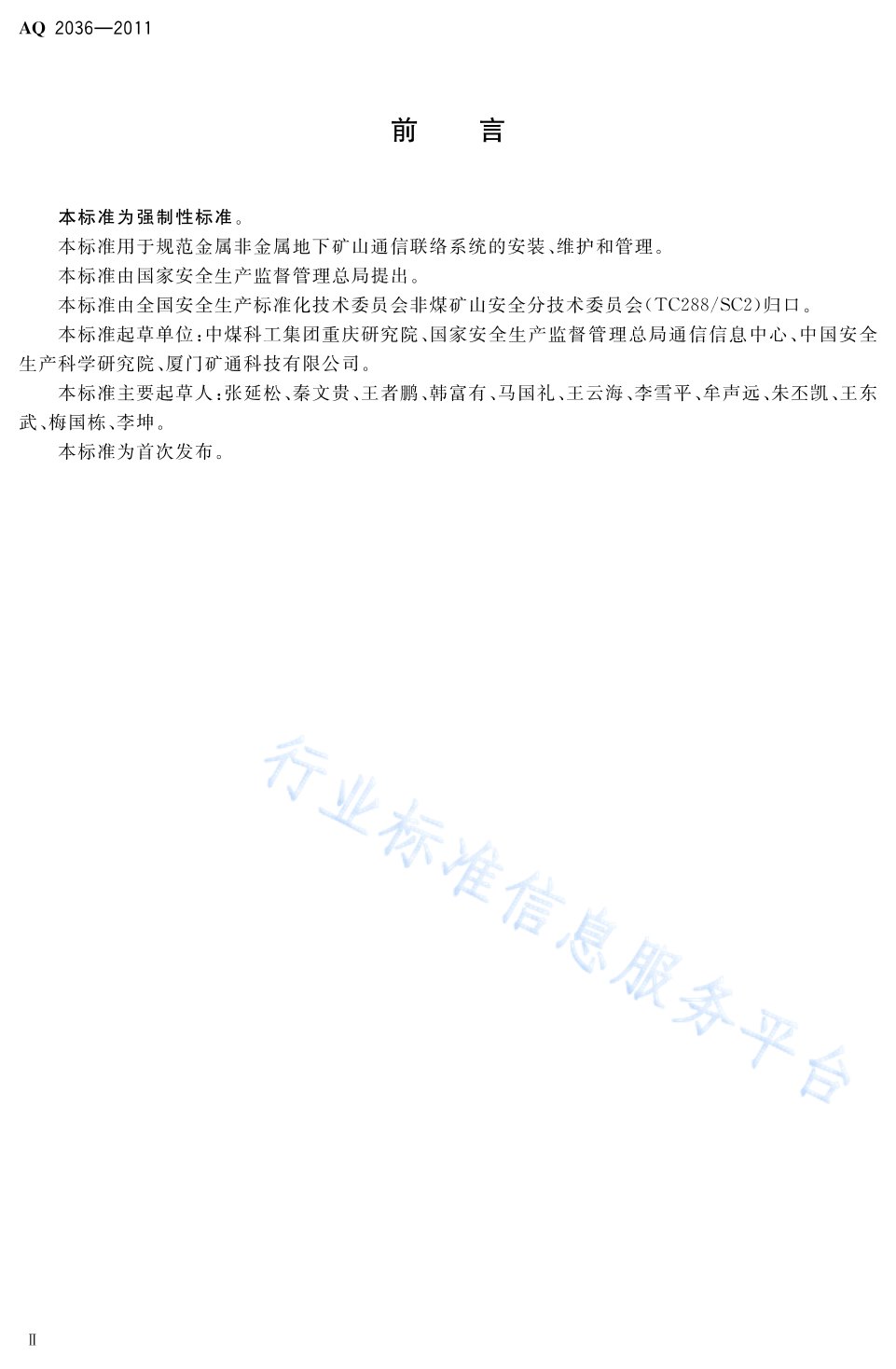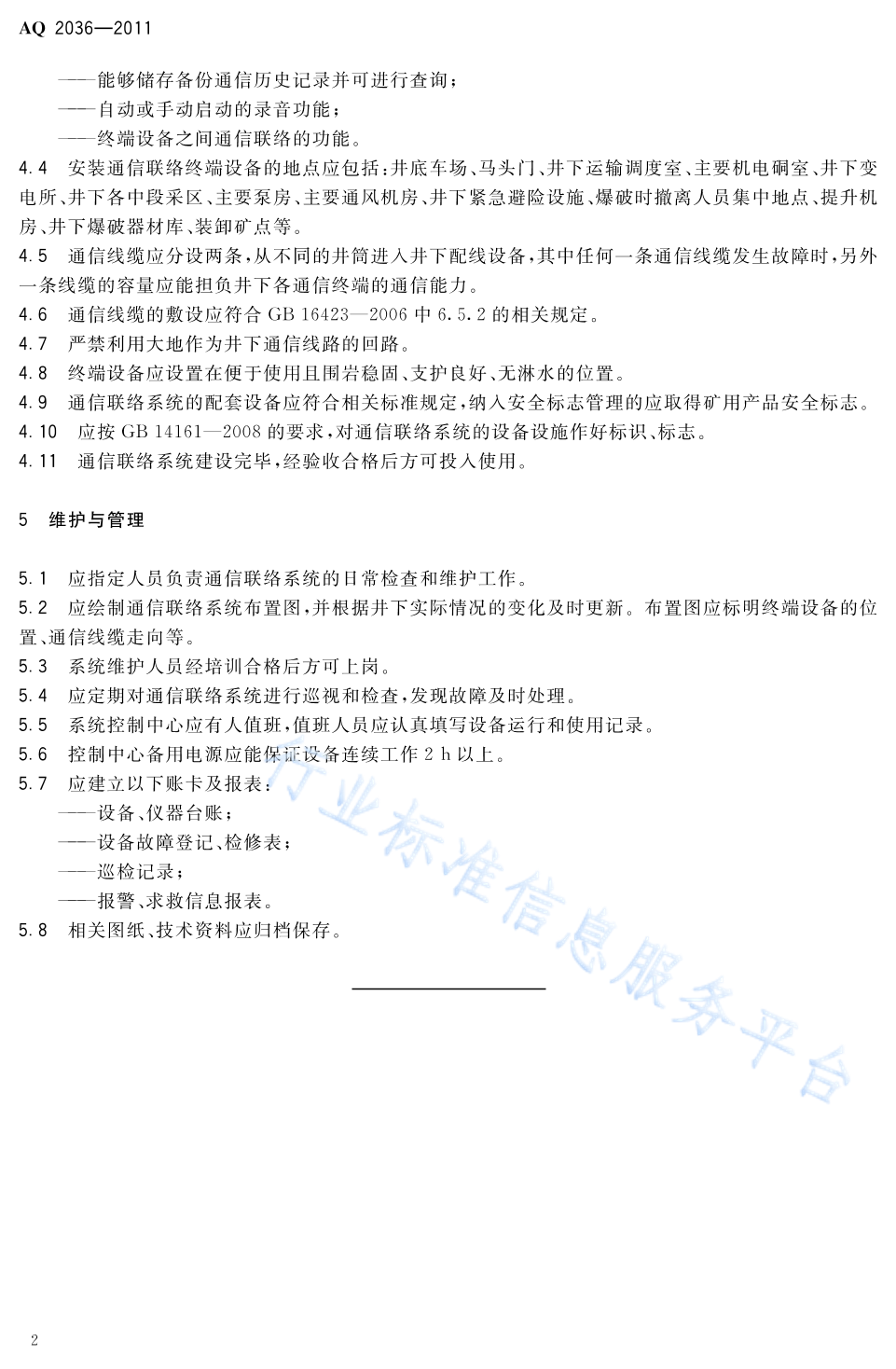 AQ 2036-2011 金属非金属地下矿山通信联络系统建设规范