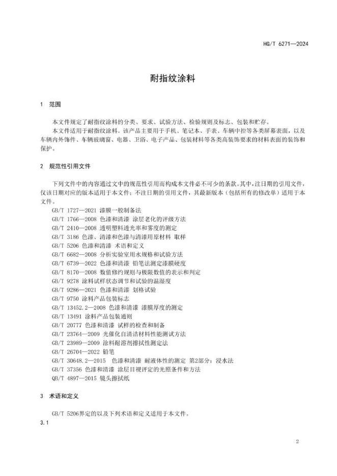 HG/T 6271-2024 耐指纹涂料
