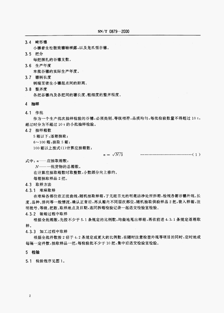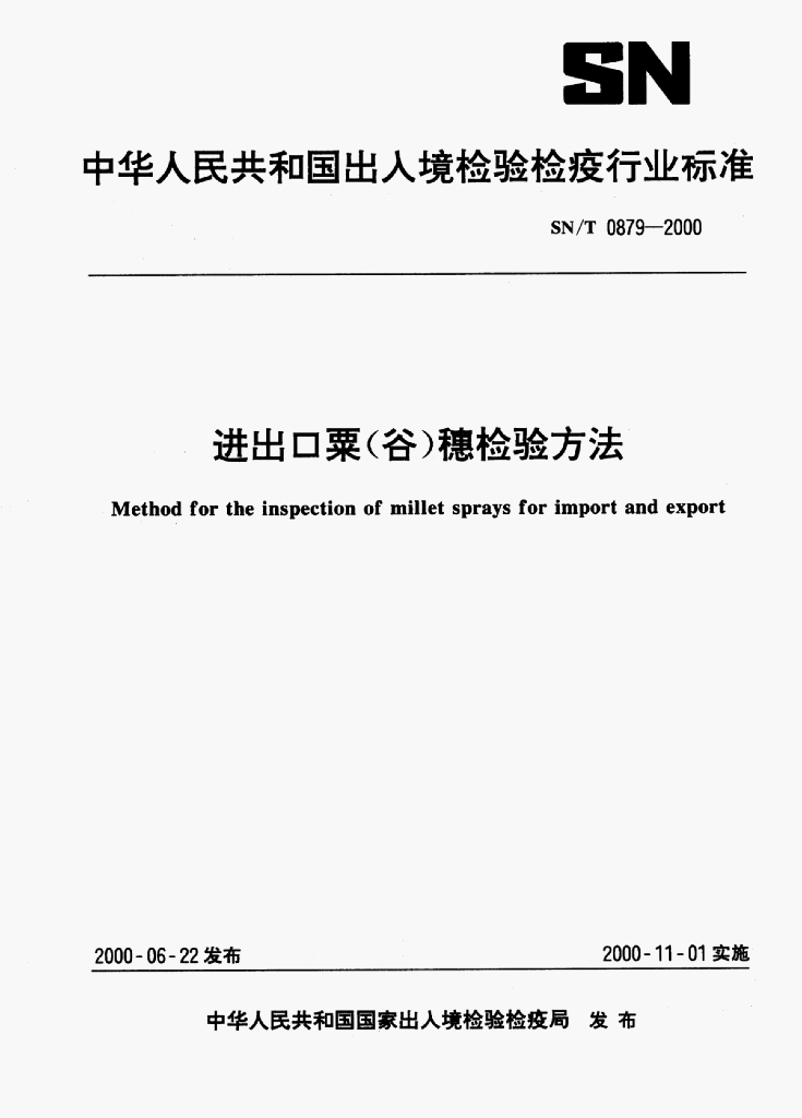 SN/T 0879-2000 进出口粟(谷)穗检验方法