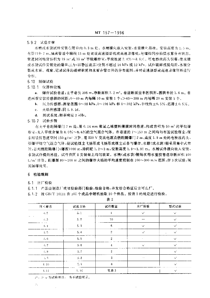 MT 157-1996 煤矿用隔爆水槽和隔爆水袋通用技术条件