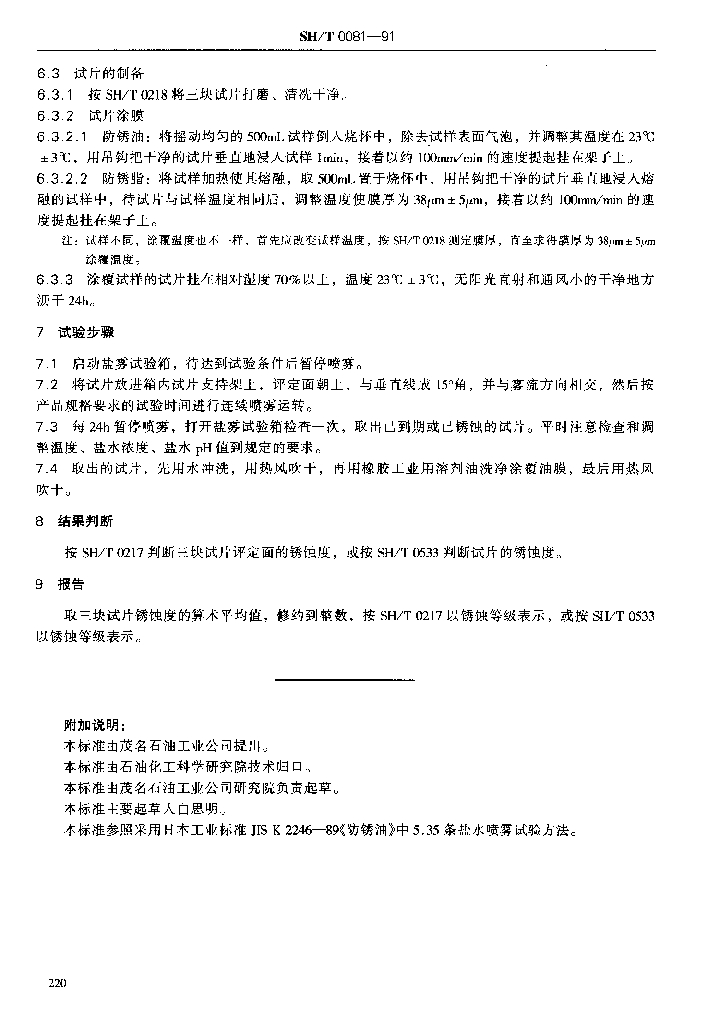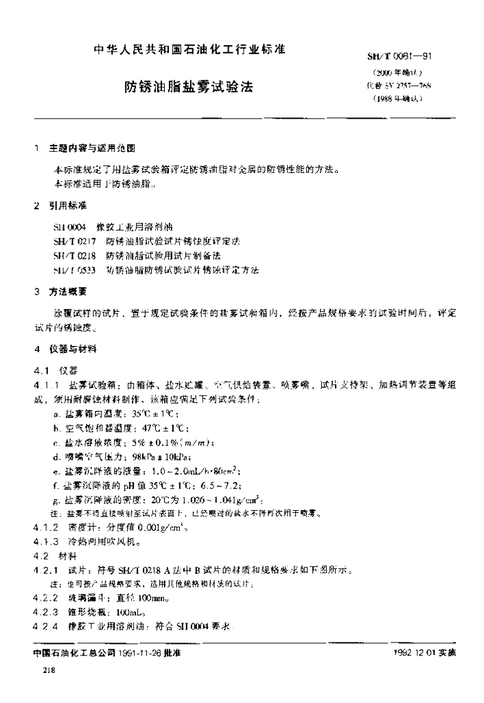 SH/T 0081-1991 (2000年确认)防锈油脂盐雾试验法