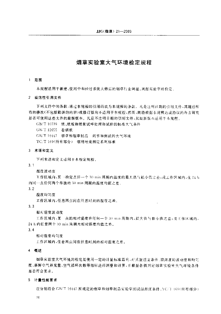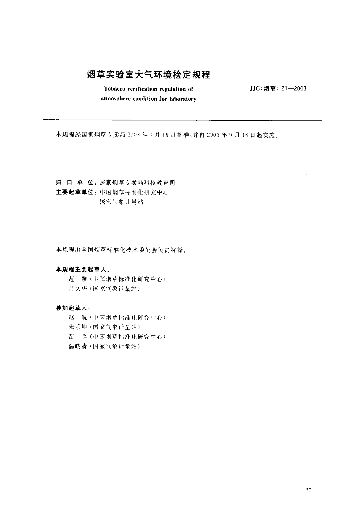 JJG(烟草)21-2003 烟草实验室大气环境检定规程