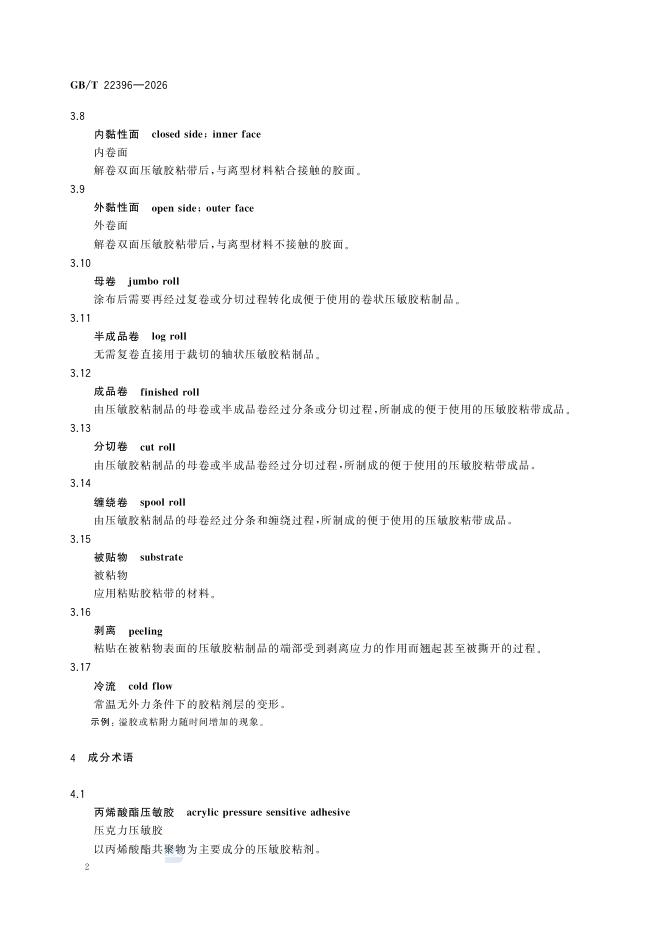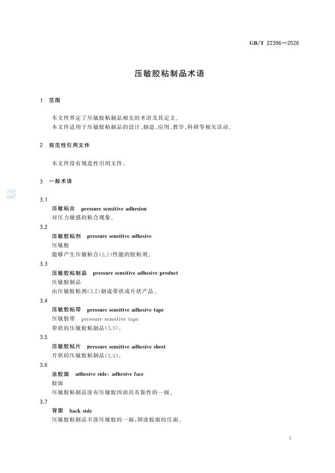 GB/T 22396-2026 压敏胶粘制品术语