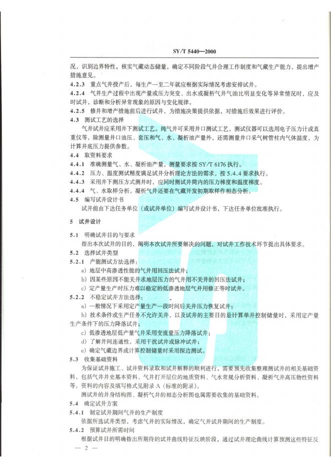 SY 5440-1992 天然气井试井技术规范