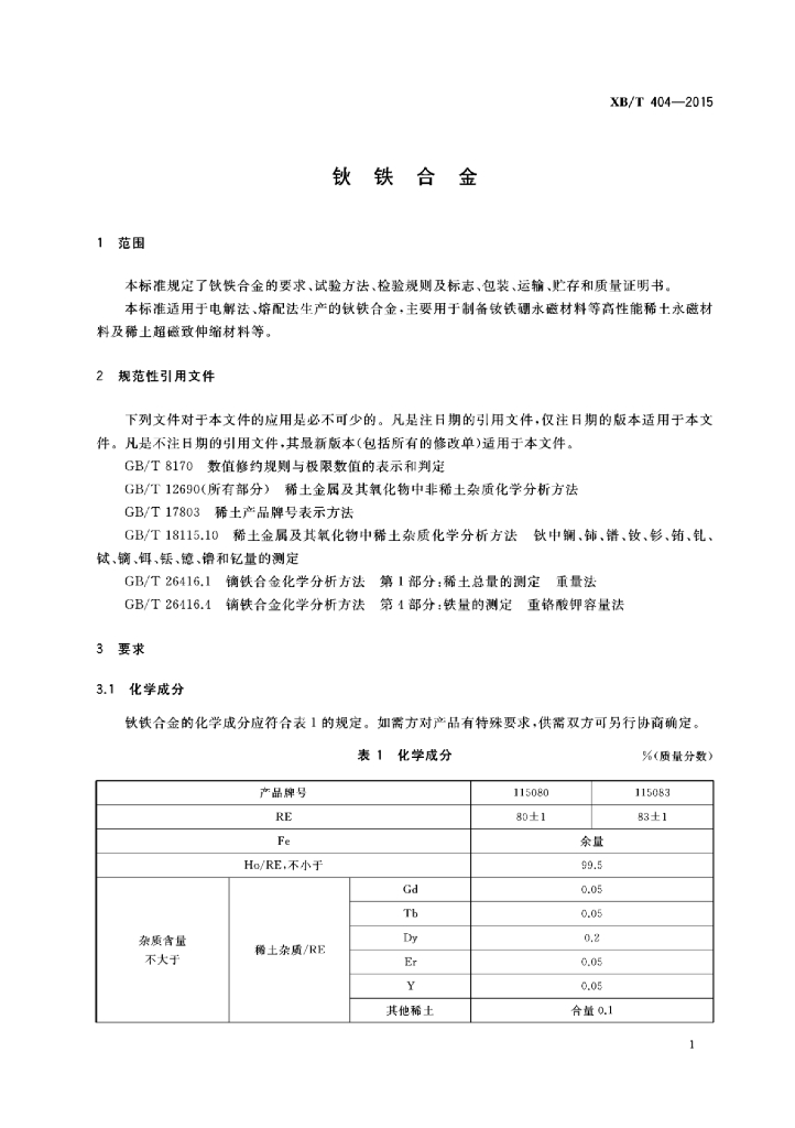 XB/T 404-2015 钬铁合金
