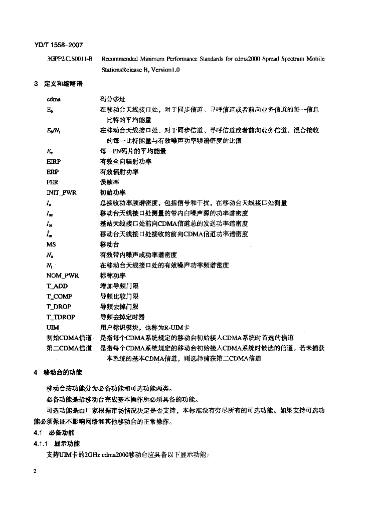 YD/T 1558-2007 2GHz cdma2000 数字蜂窝移动通信网设备技术要求:移动台