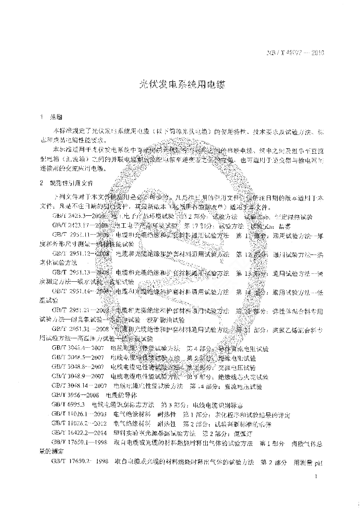 NB/T 42073-2016 光伏发电系统用电缆