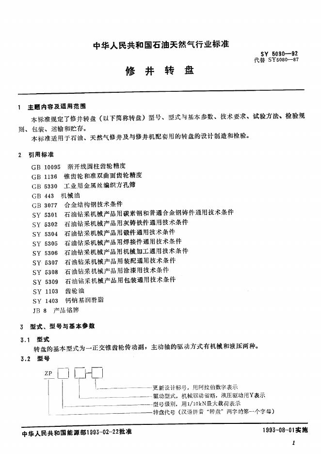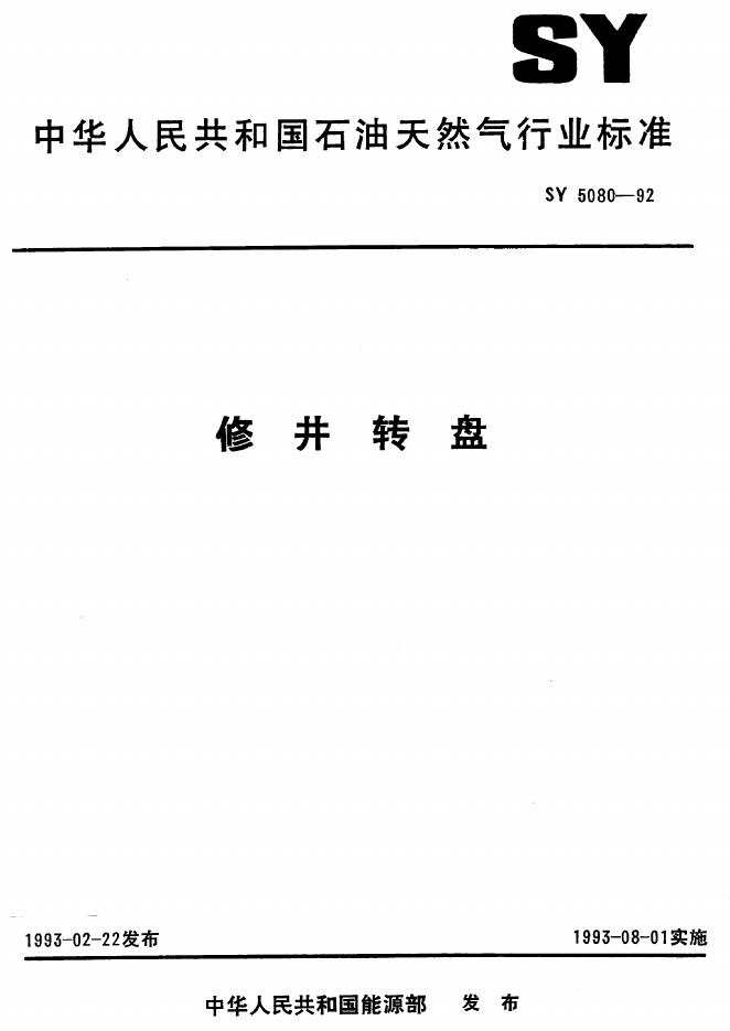 SY 5080-1992 修井转盘