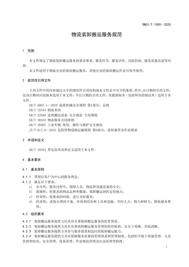 DB51/T 1590-2025 物流装卸搬运服务规范