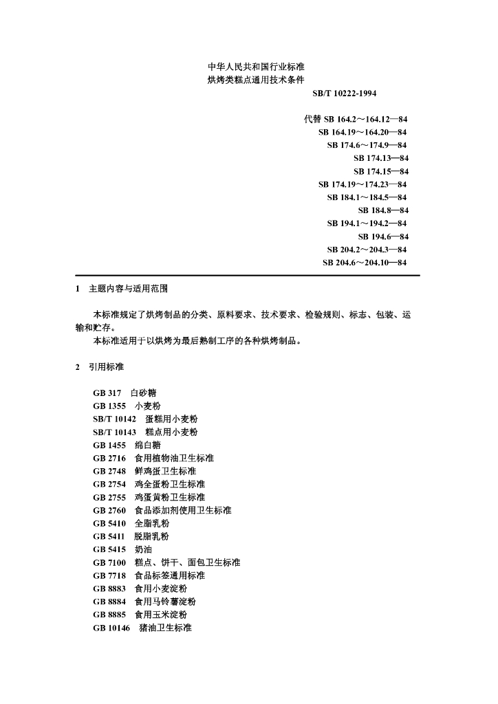 SB/T 10222-1994 烘烤类糕点通用技术条件