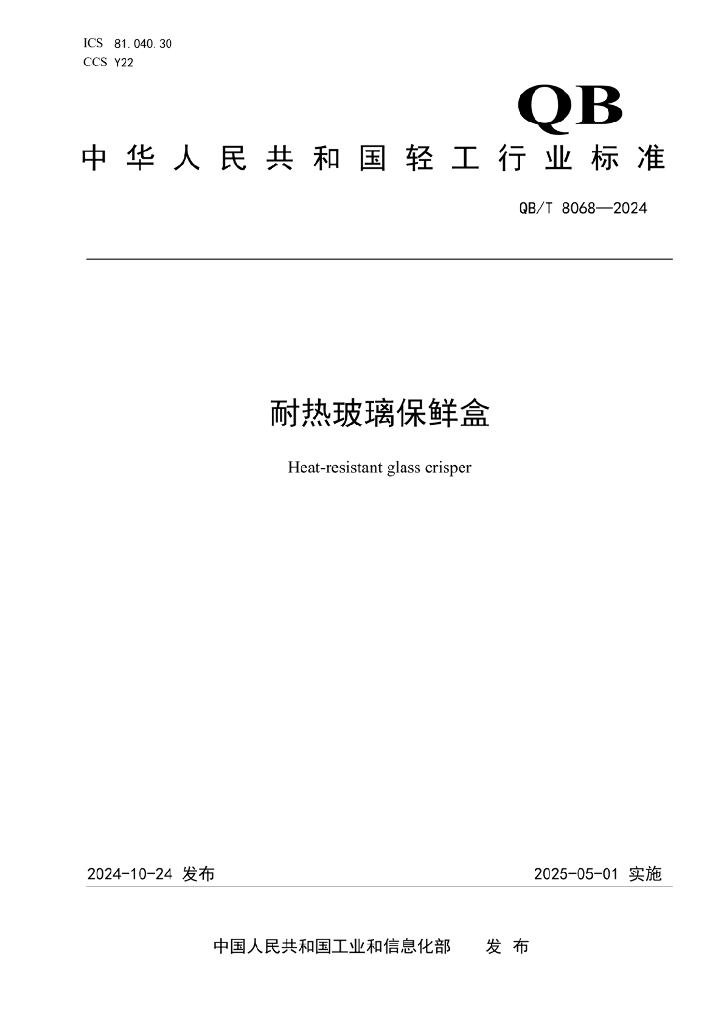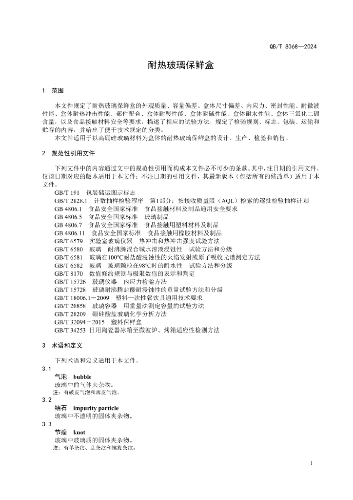 QB/T 8068-2024 耐热玻璃保鲜盒