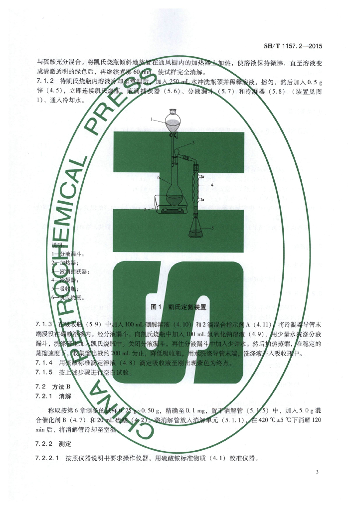 SH/T 1157.2-2015 生橡胶 丙烯腈-丁二烯橡胶(NBR)中结合丙烯腈含量的测定 第2部分:凯氏定氮法