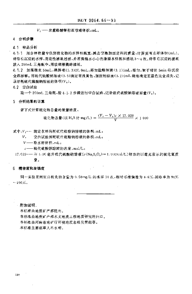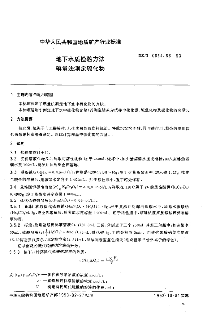 DZ/T 0064.66-1993 地下水质检验方法 碘量法测定硫化物