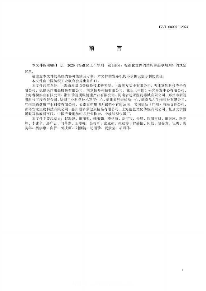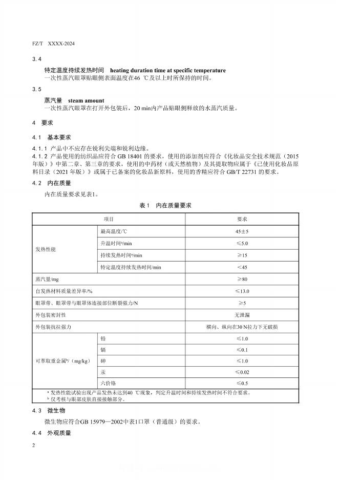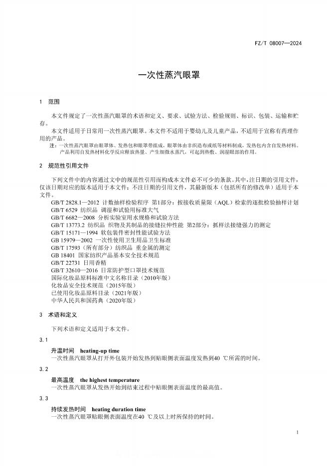 FZ/T 08007-2024 一次性蒸汽眼罩