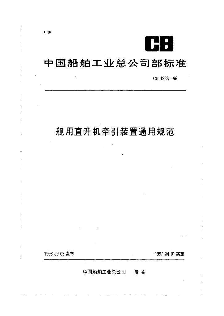 CB 1288-1996 舰用直升机牵引装置通用规范