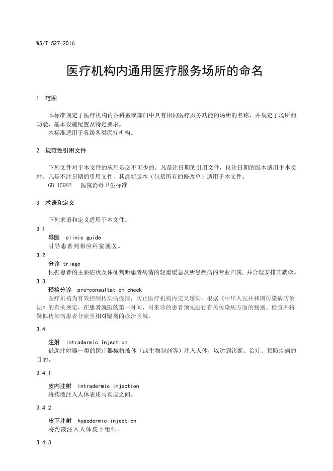 WS/T 527-2016 医疗机构内通用医疗服务场所的命名