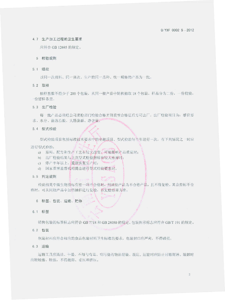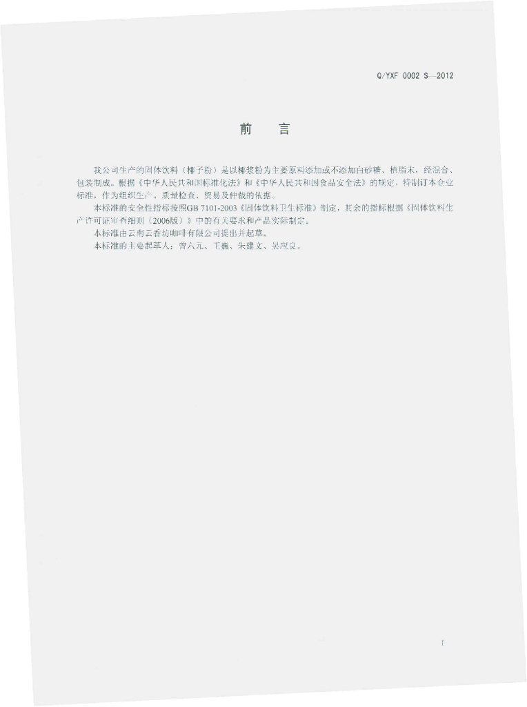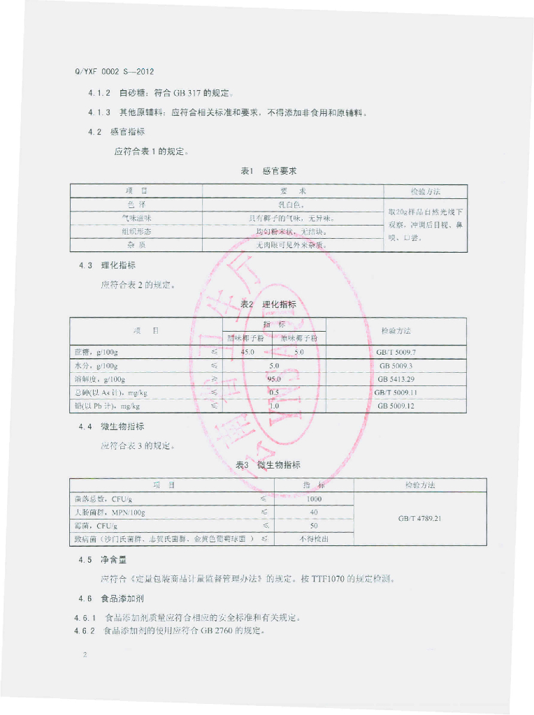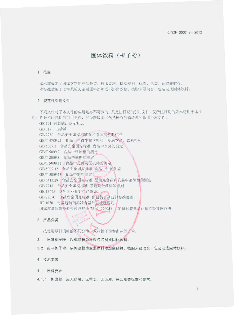 Q/YXF 0002S-2012 固体饮料(椰子粉)